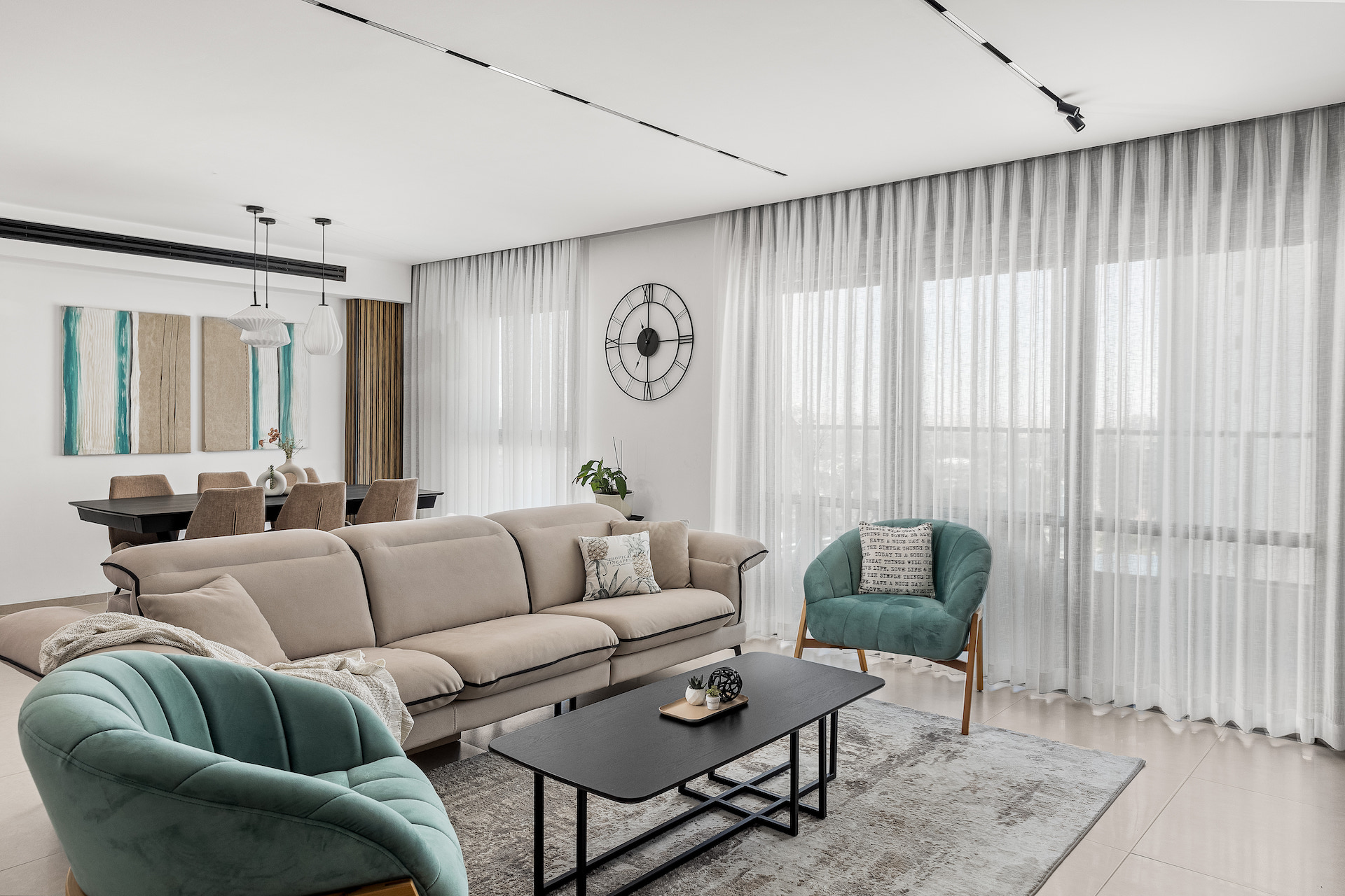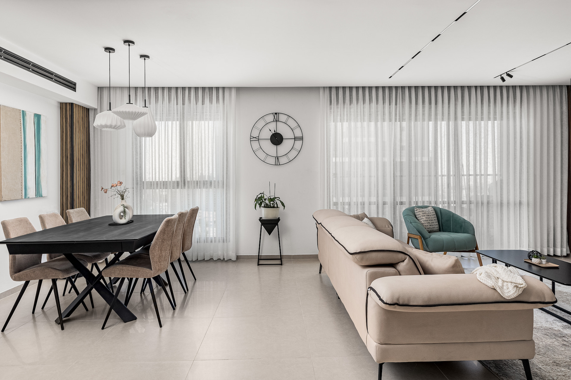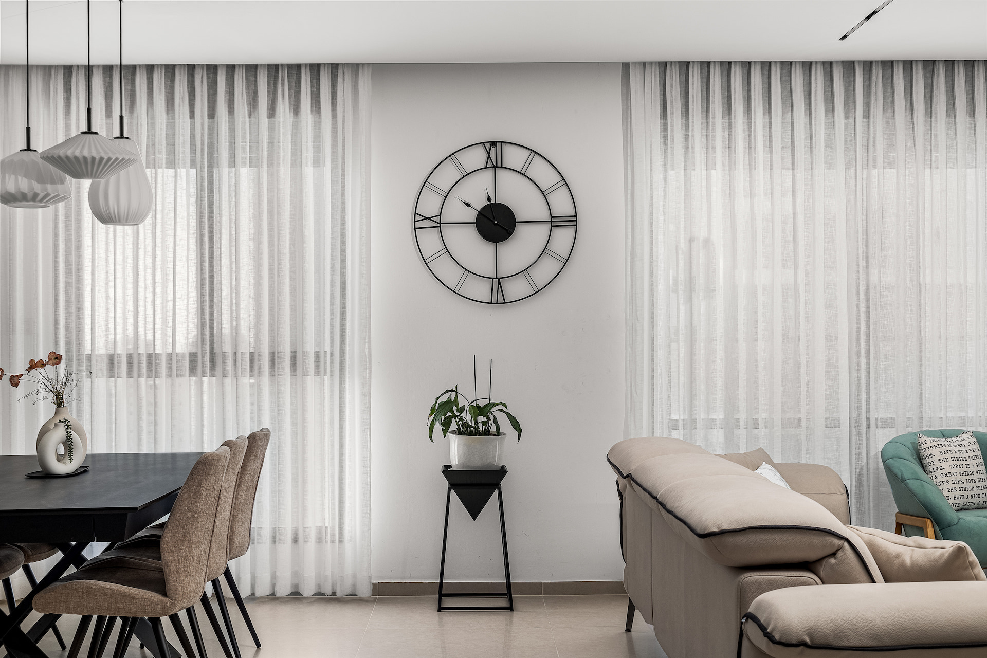 כשנכנסים לבית דבר ראשון ששמים לב זה שהבית מאוד מואר באור טבעי וזה הכתיב את הסטיילינג של הבית. הסטיילינג נשאר בקו נקי כיאה למי שמתגוררת בו, הבית נותן אווירה של נינוחות ורוגע עם אסתטיקה ואלגנטיות נצחית בנגיעות של מינימליזם.
