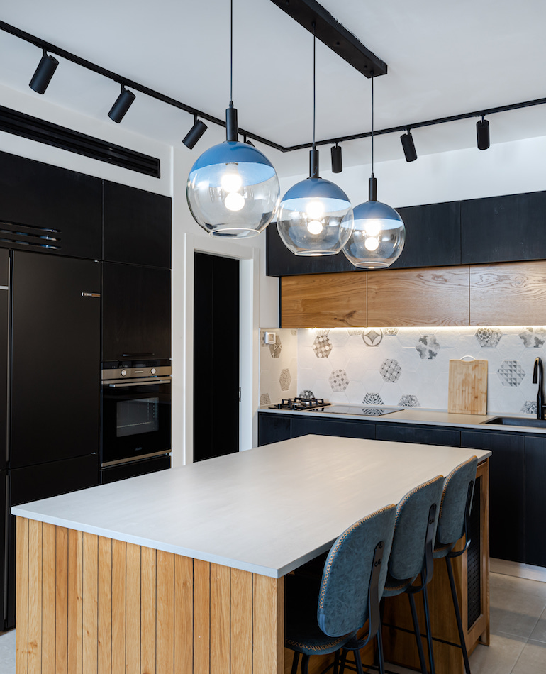 העיצוב התחיל מתכנון המטבח, שמבחינתי זה המקום הכי חשוב בבית כי אין מה לעשות 'אוכל זה מזון לנשמה', הלקוחה ידעה לתאר במדוייק איך היא רוצה שהמטבח שלה יראה ומשם המשכנו לסלון בחרנו את הצבעים בהשראת הטבע גוונים חומים עם נגיעות כחול ולתוכם הכנסנו נגיעות בגוונים של המטבח, שחור ולבן. החדר שינה שאב השראה מהסלון רק הפוך, הרצפה פרקט בגוון חום מעושן וכל שאר הפריטים בחדר נבחרו מהתת גוון האפור שיש בפרקט.